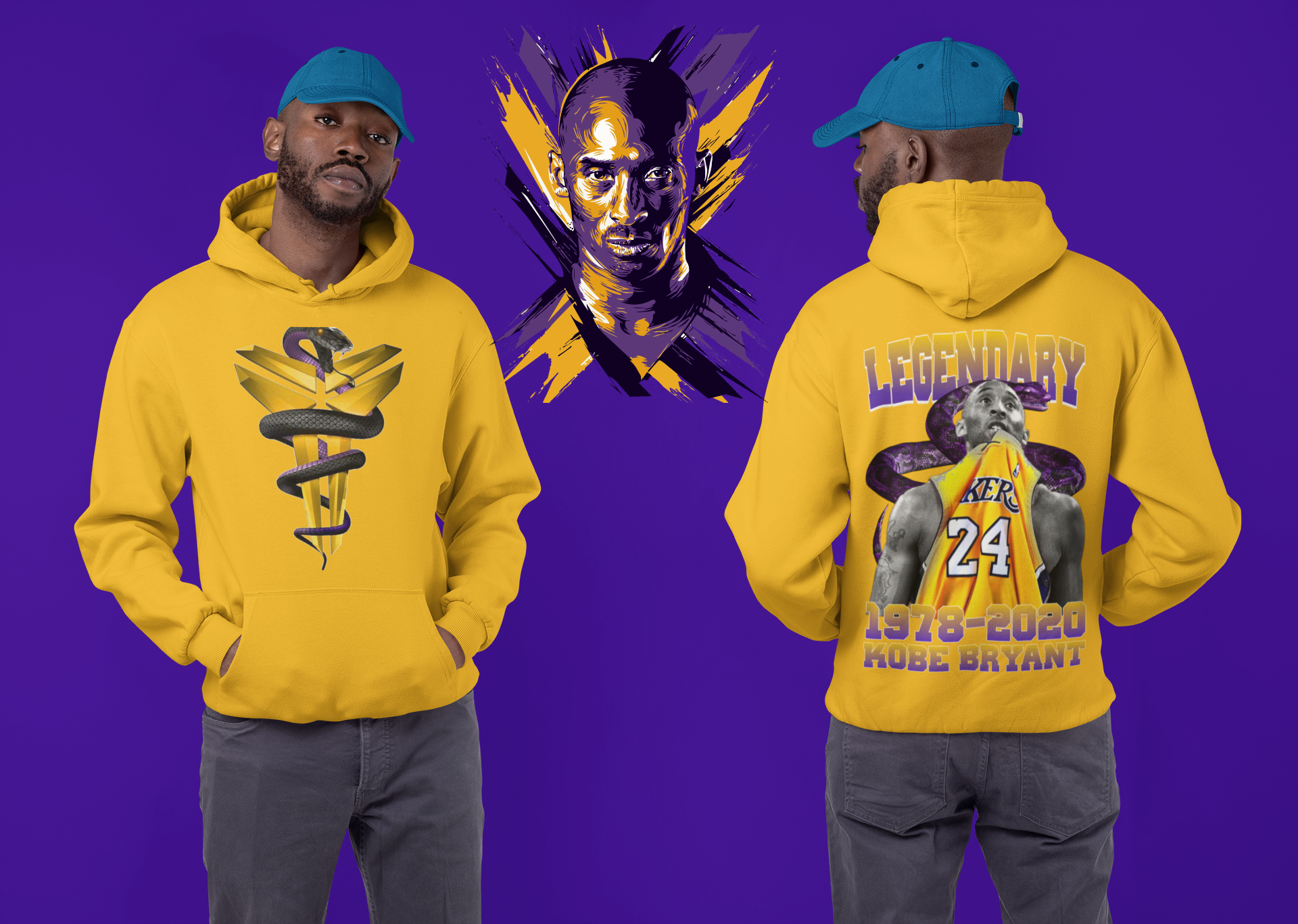 🐍 Front & Center: A fierce black mamba coils around a golden "V" emblem, symbolizing victory, venom, and the unbreakable spirit of Kobe Bryant.